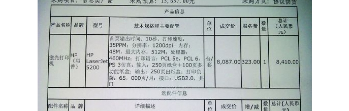南都讯昨日,华声论坛出现了一条关于政府采购的帖子,引起广大网友关注。帖子中的合同文件显示,中科院空间科学与应用研究所购买的打印机内存条,价格竟高达6274元。昨日,中科院空间科学与应用研究所向记者证实有此单采购,并称是通过正规渠道合法采购的。而惠普(中国)公司指定经销商在接受记者采访时表示,同型号的一般内存条只要300元左右,而原装同型号的内存条也只售600元左右。