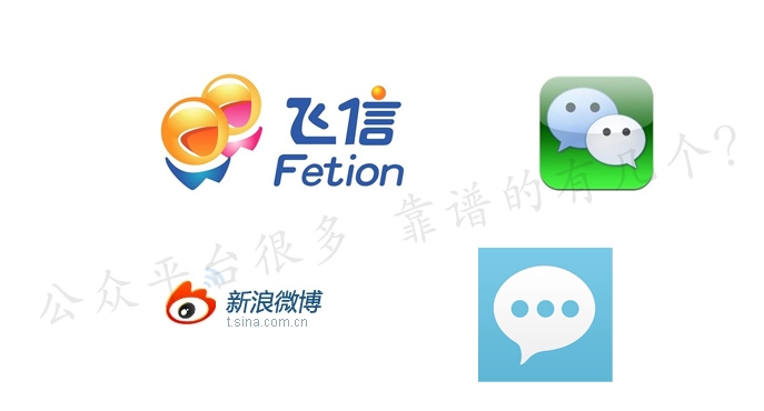 忽如一些春风来,“公众平台”遍地开。目前已经将公众平台做出些眉目的公司有:新浪微博、阿里巴巴、飞信、有道。在笔者看来,除了微信最热闹的最有前途外,其余的几个平台更多是打着“公众平台”这个热词的大旗而已,能不能成只有天知道。