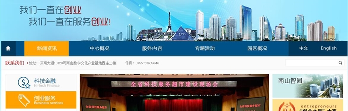 喜签深圳市南山区科技创业服务中心网站改版项目