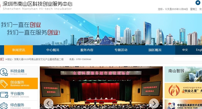 喜签深圳市南山区科技创业服务中心网站改版项目