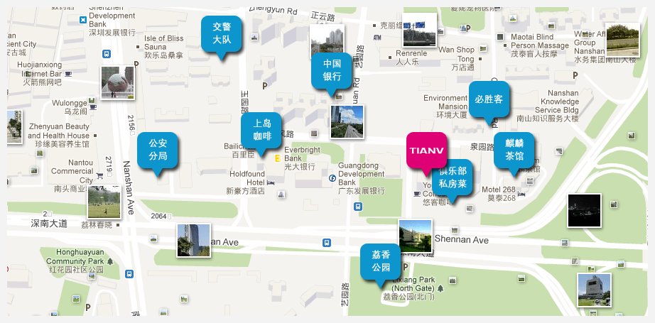 下面是一张地图,显示我们周边的一些客户位置,以及我们喜欢的餐馆、咖啡厅和其他我们进出出没的地方。